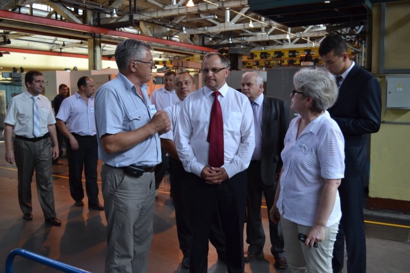 27 июня чебоксарские предприятия "АБС Электро" - ОАО "ВНИИР" и ОАО "АБС Автоматизация" посетила делегация в составе представителей 11 белорусских компаний во главе с Министром промышленности Республики Беларусь Дмитрием Степановичем Катериничем.