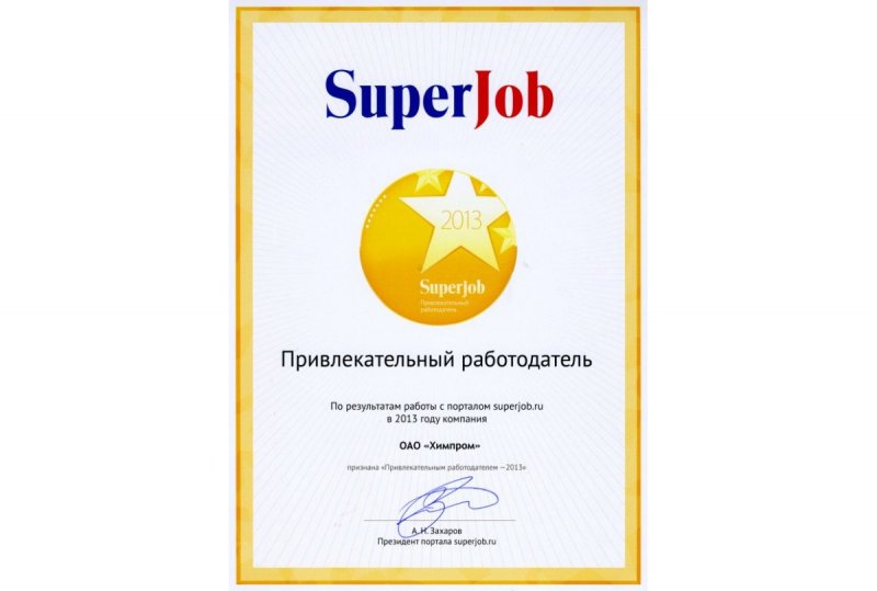 ОАО 'Химпром' второй год подряд назван 'Привлекательным работодателем-2013'ОАО «Химпром» второй год подряд признано «Привлекательным работодателем – 2013» по результатам работы с порталом Superjob.ru в 2013 году.
