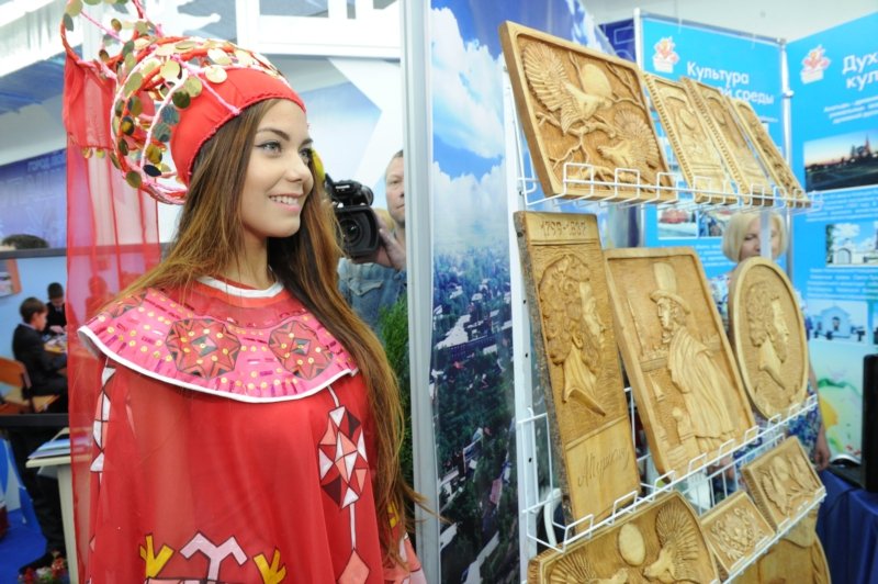В центральной части выставки - экспозиции Министерства культуры - широко представлены изделия декоративно-прикладного искусства, сувенирная продукция, работы мастеров народных промыслов, произведения искусства и старинные экспонаты Чувашского национального музея. Учащиеся Чувашского республиканского училища культуры исполнили чувашский танец, вовлекая в него и гостей.