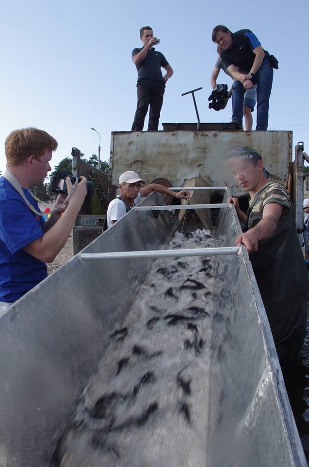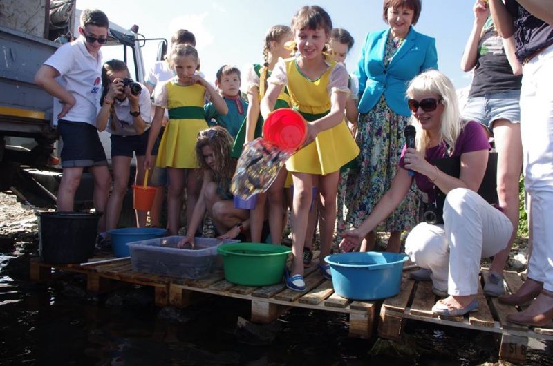 Ребята из лагеря Волна проводят выпуск маленьких стерлядок в ВолгуРусГидро продолжает серию благотворительных экологических акций по зарыблению водоемов в регионах своего присутствия. Вчера гидроэнергетики выпустили в Чебоксарское водохранилище (Республика Чувашия) 15 тысяч мальков стерляди – рыбы особо ценной породы, занесенной в Красную книгу. Цель акции – восстановление рыбных ресурсов, сократившихся во время строительства и эксплуатации ГЭС.