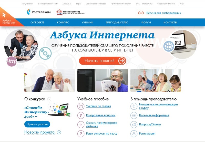 Обучающее пособие и интернет-портал «Азбука интернета» разработаны в рамках подписанного 22 января 2014 г. Соглашения между ПАО «Ростелеком» и Пенсионным Фондом РФ о сотрудничестве при обучении пенсионеров компьютерной грамотности. Целью сотрудничества является облегчение доступа пенсионеров к получению государственных услуг в электронном виде через сеть Интернет и повышению качества жизни посредством обучения компьютерной грамотности и работе в сети Интернет.