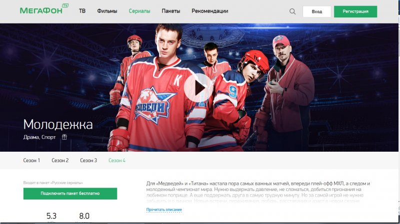 Чтобы смотреть сериал «Молодёжка», достаточно подключить пакет «Русские сериалы» в МегаФон.TV. Тем абонентам линейки тарифных планов «МегаФон - Все включено» S, M, L, XL и VIP, которые уже ранее подключили пакет «Русские сериалы» в МегаФон.TV, он автоматически станет доступным бесплатно на период акции.