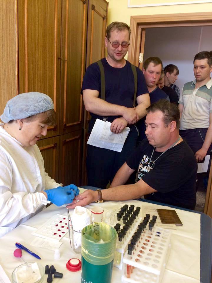 Донацию проводили после обязательного определения уровня гемоглобина и осмотра врача, так как сдача крови должна быть безопасной и для самого донора.