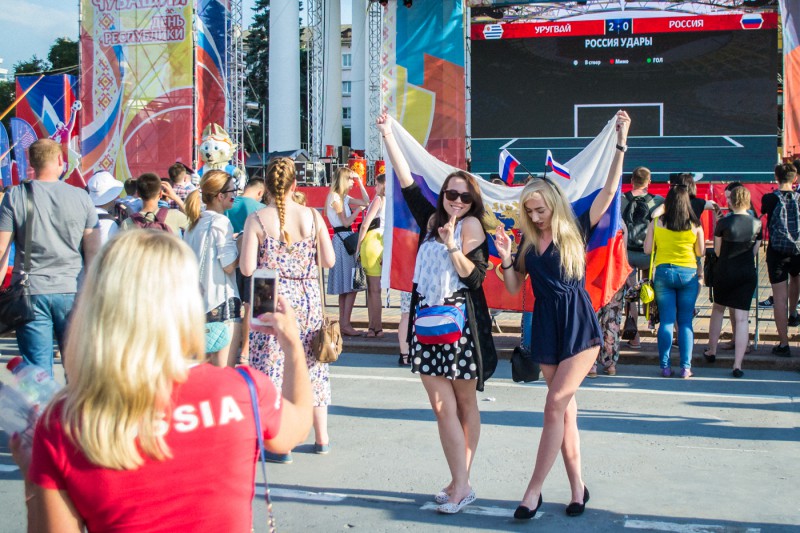 Трансляции матчей организованы на Красной площади Чебоксар. Фан-зона с 14 июня открыта для жителей и гостей республики. Специалисты компании «МегаФон» подсчитали активность своих абонентов и выяснили, что больше всего звонков зрители совершали до начала матчей. Во время открытия фан-зоны с 16 до 18 часов 14 июня абоненты наговорили в 2,5 раза больше, чем за этот период в обычный выходной день. Активность в социальных сетях тоже росла в часы матчей – зрители делились фотографиями и видео с друзьями и родными, комментировали ход игры в видеопостах. Самое большое колчиество минут перед матчем фанаты на Красной площади проговорили 14 июня, во время матча России и Саудовской Аравии. На игре с Египтом наши болельщики разговаривали как и в обычный день, сказалось вечернее время проведения трансляции, зато перед третьей игрой - с командой Уругвая – активность звонящих перед матчем повысилась.
