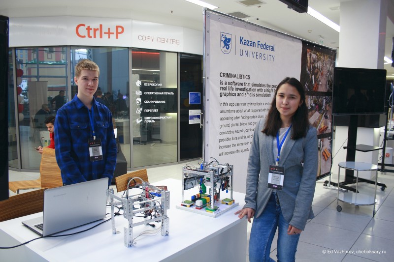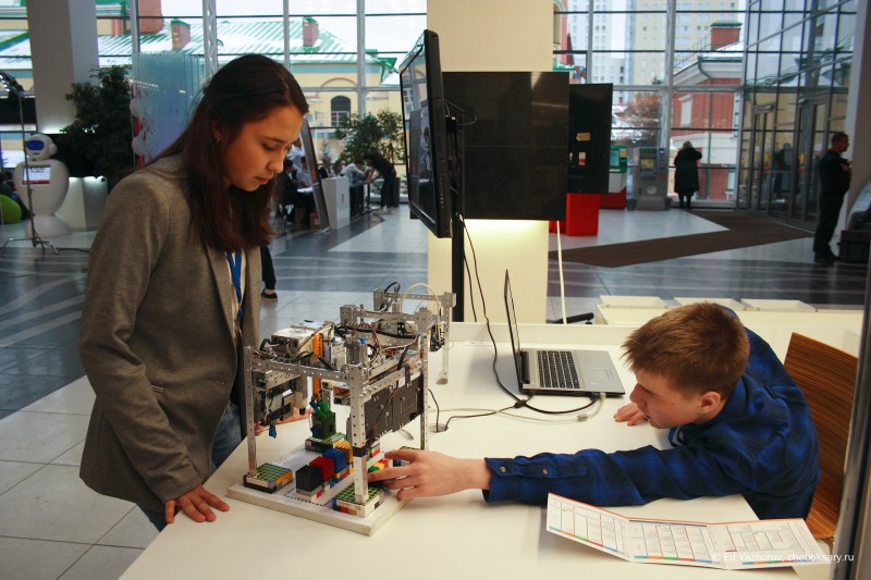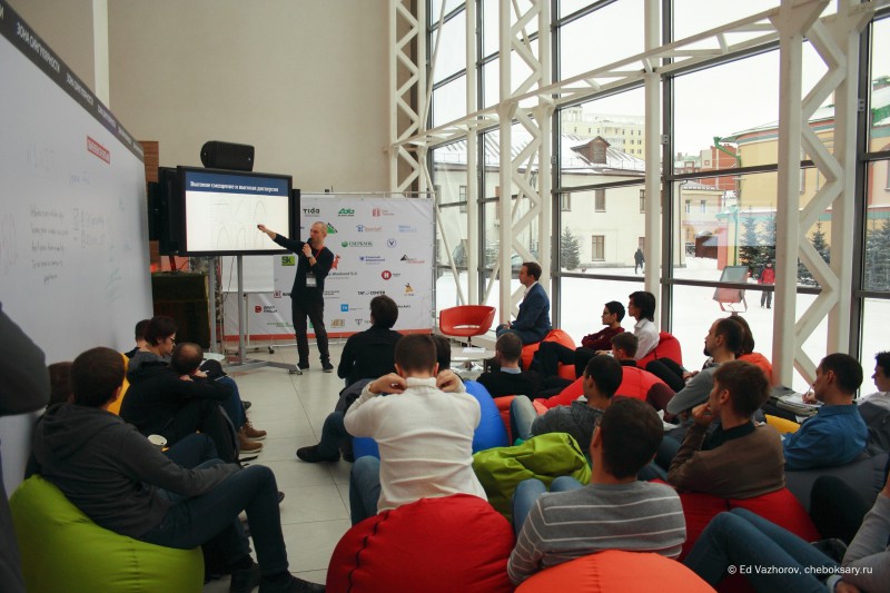 Перед началом обсуждения темы использования Big Data мне удалось немного пообщаться с юными участниками KAZAN STARTUP WEEKEND 5.0. Двое учеников казанского ИТ-лицея (парень и девушка) демонстрировали в фойе ИТ-парка всем интересующимся свою разработку в области робототехники, занявшую на всероссийском конкурсе по робототехнике второе место. Сложная конструкция из металла и пластика, управляемая двумя контроллерами (Lego и Arduino), осуществляла выборку и перестановку разноцветных кубиков. По словам разработчиков, эта система может быть полезной, например, для сортировки почтовых отправлений. Искренне удивили сложность работы и уровень знаний юных робототехников. Можно было только порадоваться за талантливую молодежь, начиная со школьной скамьи обладающую необъятными возможностями по изучению новейших информационных технологий и получения в итоге востребованных на рынке ИТ-профессий. Кстати, в фойе было много других интересных стендов, таких как, например, 3D-мышь для виртуальной реальности. Однако мы отправились в «зону сингулярности», чтобы послушать об использовании Big Data в различных отраслях.