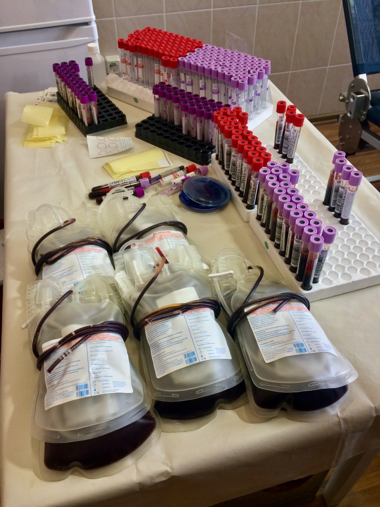 Перед донацией врачи определяли уровень гемоглобина и проводили медосмотр, поскольку сдача крови должна быть безопасной и для самого донора. Каждый доброволец сдал по 450 мл крови.