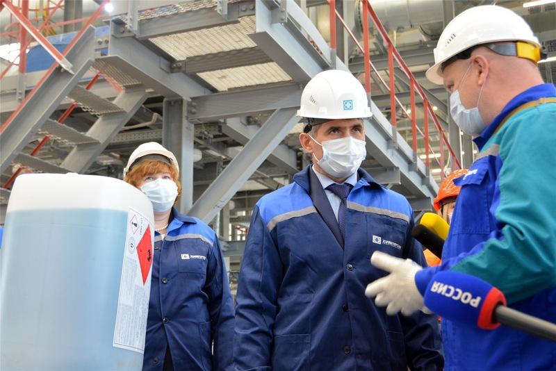 Руководитель региона посетил предприятия города. На ПАО "Химпром" Олег Николаев ознакомился с производством гипохлорита кальция. Единственный в России цех, выпускающий данный реагент, был открыт на градообразующем предприятии Новочебоксарска в 2018 году.