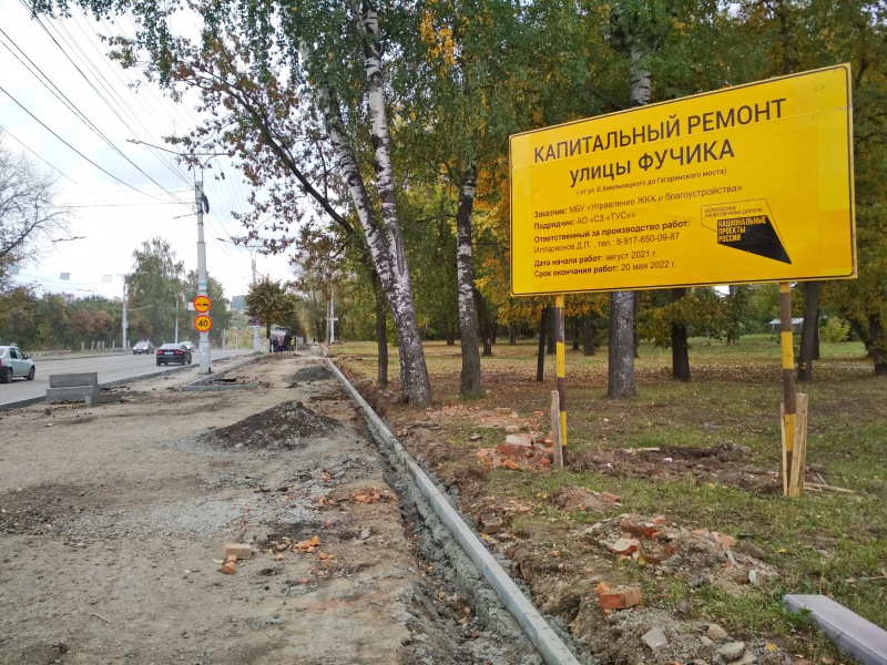 На участке также предстоит установить 438 п.м барьерного ограждения и 232 п.м перильного ограждения, 18 дорожных знаков. На проезжей части ул. Фучика, как и на других объектах, отремонтированных в 2021 году, будет нанесена дорожная разметка из термопластика.