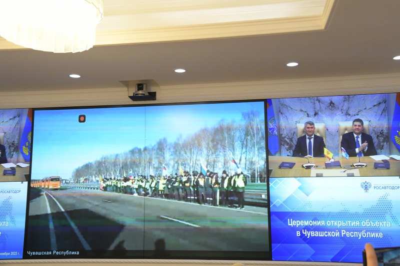 Сегодня в Росавтодоре в формате телемоста руководитель ведомства Роман Новиков совместно с главой Чувашской Республики Олегом Николаевым дал старт движению по реконструированному участку трассы М-7 «Волга» в районе села Хыркасы.