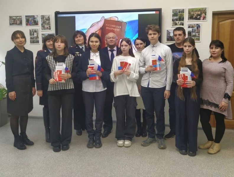 Следуя традиции, подросткам были вручены символические подарки – брошюры "Конституция Российской Федерации" и обложки к паспортам с изображением государственной символики".