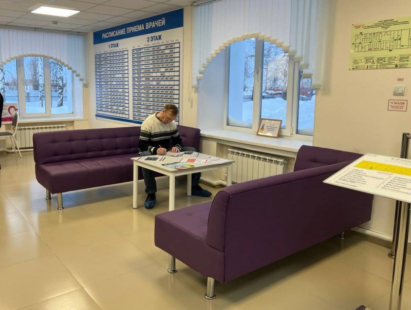 Улучшены условия для прохождения диспансеризации и профилактических медицинских осмотров для взрослого населения, все кабинеты находятся в одной зоне, на первом этаже: кабинет терапевта, медицинской профилактики, процедурный кабинет, смотровой кабинет акушера, кабинет вакцинации, кабинеты хирурга, травматолога, офтальмолога, онколога и оториноларинголога.