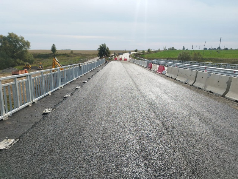 В настоящее время выполнены работы по демонтажу дорожной одежды и защитного слоя, так же демонтированы крайние балки пролетного строения и смонтированные новые, уложены водопропускные трубы для обеспечения технологического проезда.