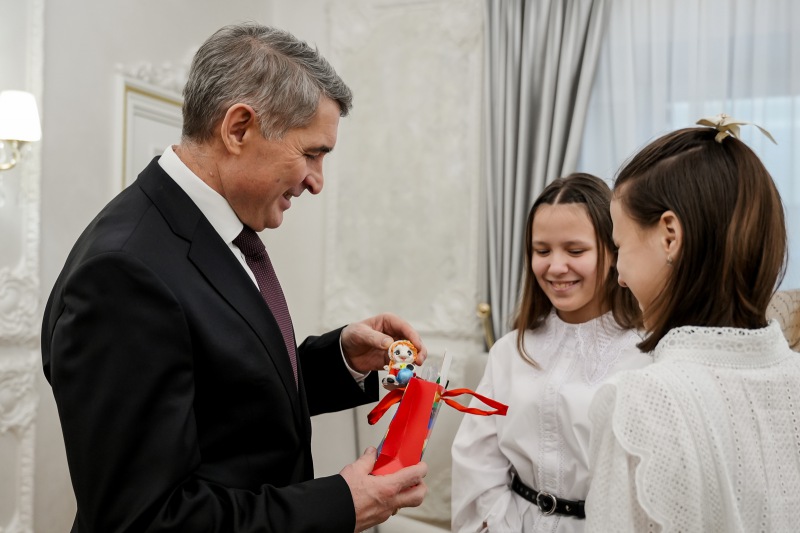В канун Нового года Олег Николаев встретился с юными жителями Чувашии и порадовал их подарками. За чашкой чая разговор получился душевный: ребята много смеялись и задавали вопросы Главе республики. Лошадку, сделанную своими руками, Олегу Алексеевичу подарили сёстры-близняшки Арина и Кира.