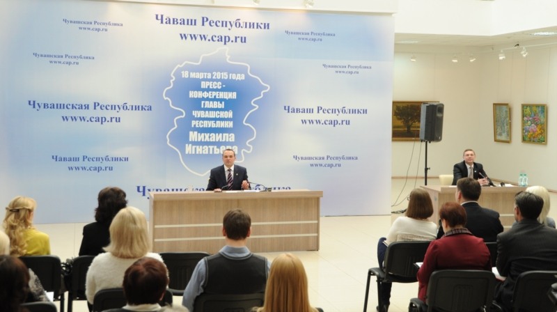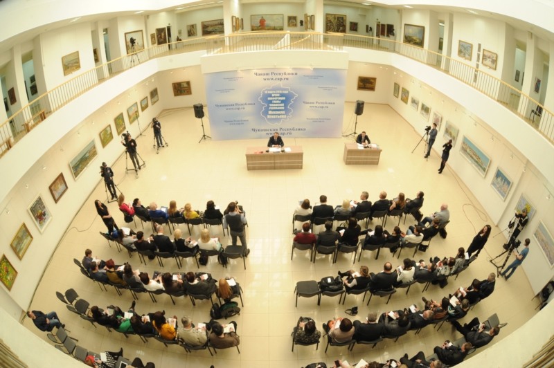 18 марта в Чувашском государственном художественном музее состоялась пресс-конференция Главы Чувашской Республики Михаила Игнатьева.