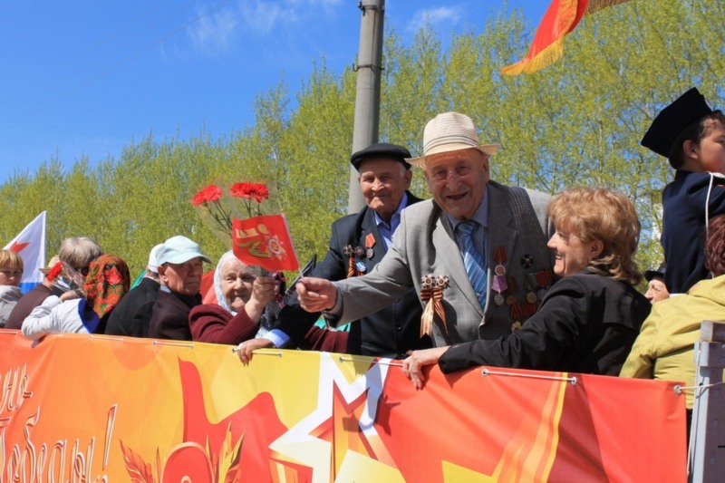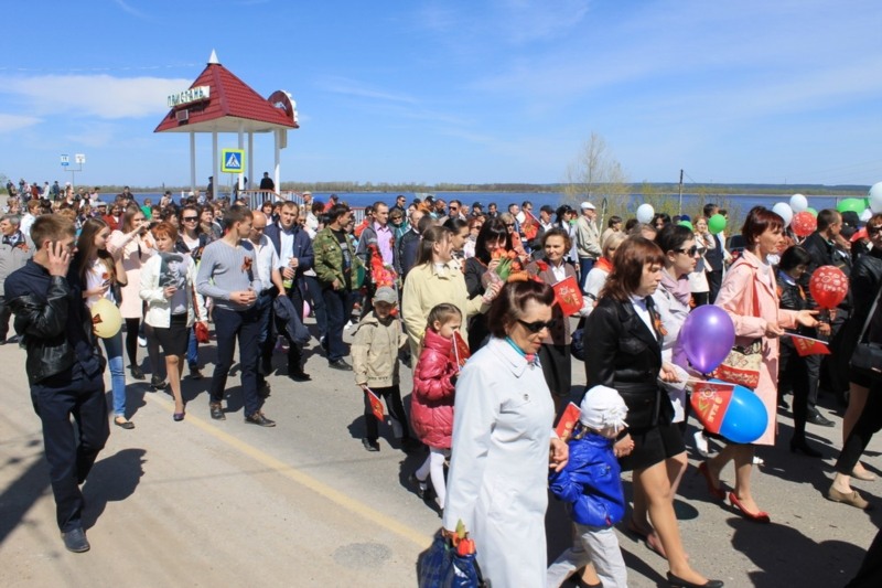 Продолжило праздничную программу дня Торжественное шествие трудовых коллективов предприятий, организаций и учреждений, общественных организаций "Весны, рожденной в 45-м, мир не забудет никогда!" . В этом году оно поменяло свой маршрут. Колонна с цветами и шарами начала свое шествие от здания ФОКа "Атал" и далее по улице 30 лет Победы" на набережную к памятнику погибшим воинам. Этим же маршрутом следовала Общественная акция-шествие "Бессмертный полк".