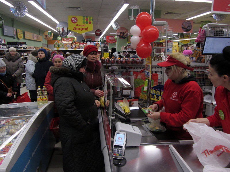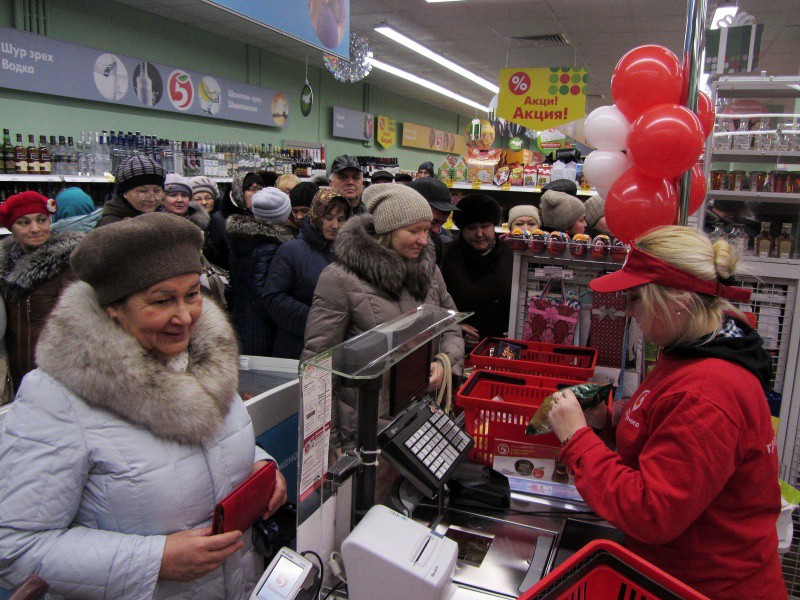 В 8:45 , еще до официального открытия и торжественного перерезания красной ленточки в 100-й по счету в Чувашии магазин хлынул поток покупателей. Такого единовременного количества посетителей в местных магазинах еще не приходилось видеть. Несмотря на холодный ветер с дождем и гололед на улице, в торговом зале новой «Пятерочки» собралось практически все взрослое население села.
