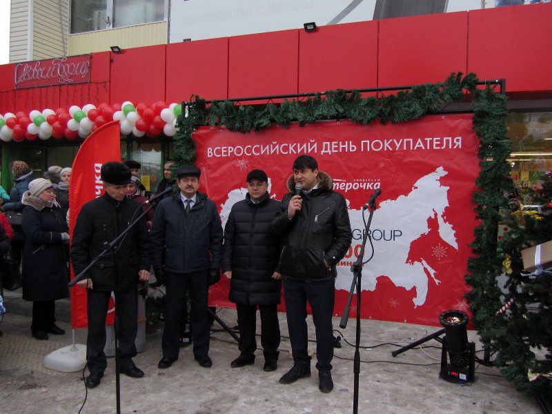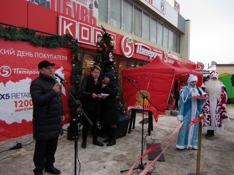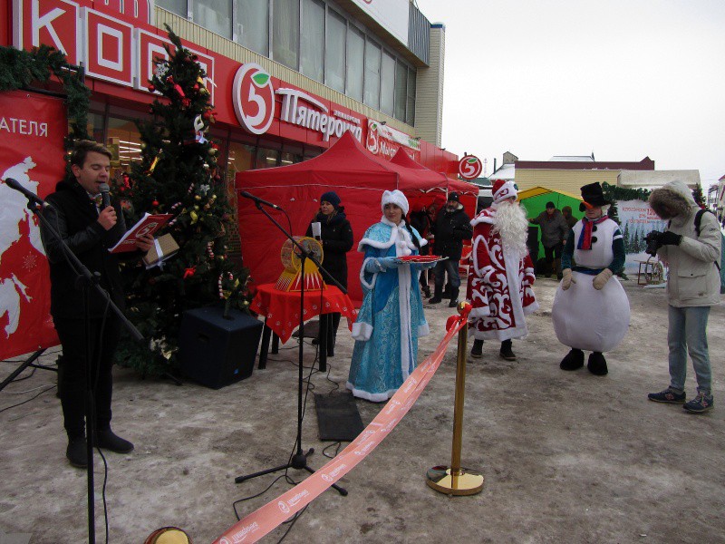 В 9:30 под аплодисменты собравшихся и фейерверки из разноцветных звездочек красную ленту перед универсамом торжественно перерезали директор Приволжского дивизиона торговой сети «Пятерочка» Эмиль Багиров, заместитель председателя правления Чувашпотребсоюза Андрей Данилов, заместитель главы районной администрации, начальник отдела организационно-контрольной и кадровой работы Николай Павлов и председатель Совета Урмарского Райпо Сергей Харитонов.
