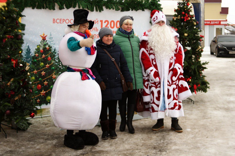 Тем временем на улице перед универсамом царила праздничная атмосфера. Посетителей, только что вышедших с покупками и просто наблюдающих за невиданным в селе событием развлекали аниматоры в костюмах Деда Мороза, Снегурочки и снеговика, а также специально приглашенный ведущий.