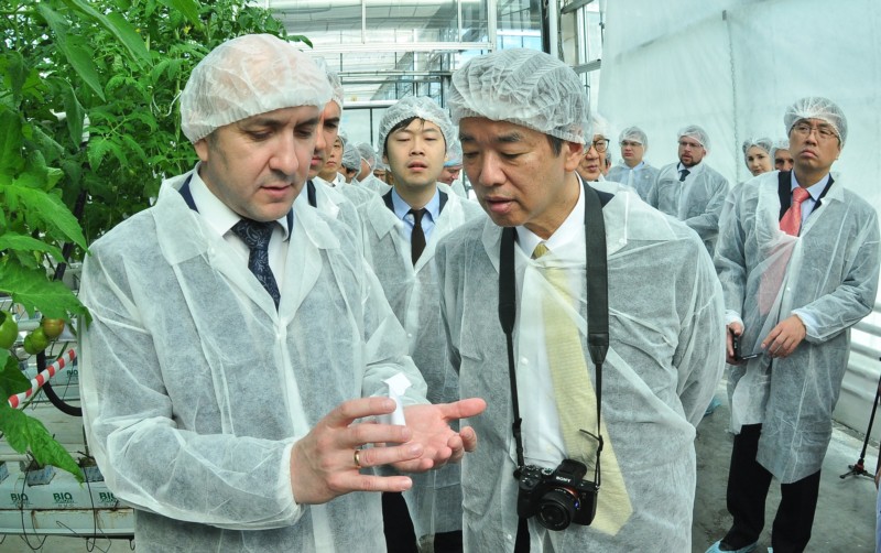 В ходе рабочей поездки японская делегация также посетила агрофирму «Ольдеевская». С работой предприятия гостей познакомила председатель Совета директоров Евгения Беликова. В настоящее время площадь зимних остекленных теплиц насчитывает свыше 25 га. Представителям японской стороны показали процесс выращивания томатов и огурцов. Все теплицы агрофирмы оснащены системами капельного полива и подачи удобрений. Оптимальный температурный фон в растениеводческих комплексах поддерживают четыре автоматизированные газовые котельные.