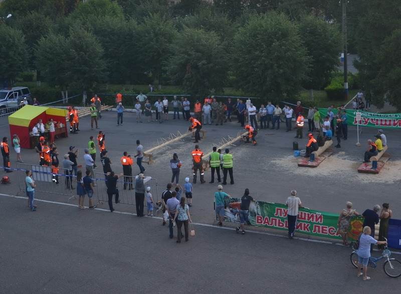 Первый этап состязания (упражнение "валка дерева") прошёл в Алатырском районе на территории Первомайского участкового лесничества. Затем конкурсанты перебрались в Алатырь – на площадь перед зданием городской администрации, где и продолжили борьбу.