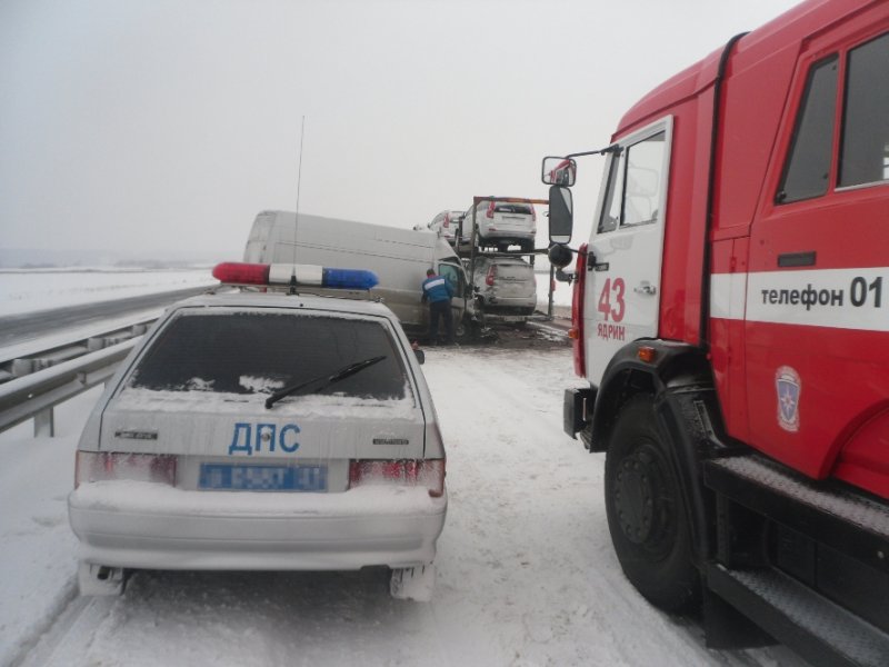 В 12.07 04.02.2014 г. в Ядринском районе, на 580 км ФАД М-7, около н.п. Иваньково, произошло произошло столкновение 2-х автомобилей. Привлекаемые силы и средства, всего: 3 ед. тех., 8 чел., в т.ч. от МЧС: 1 ед. тех., 3 чел.