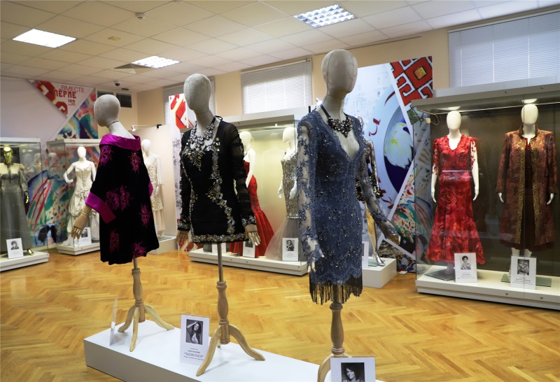 Историк моды Александр Васильев лично провел экскурсию, рассказал об экспонатах и их истории. Многие годы он коллекционирует яркие сценические наряды, в которых блистали артисты. В экспозиции представлено более 50 костюмов звезд эстрады - Аллы Пугачевой, Софии Ротару, Людмилы Гурченко, Валентины Толкуновой, Любови Успенской, Ларисы Долиной, Тамары Гвердцители и других артистов. "Здесь вся история страны в образах моды и в образах музыки", - отметил Александр Васильев.