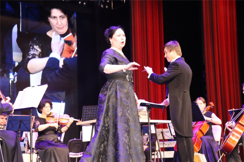 В сопровождении симфонического оркестра театра под управлением Никиты Удочкина хозяева и гости исполнили шедевры мировой вокальной классики - арии из опер Дж. Верди "Аида", "Трубадур" и "Бал-маскарад", В.А. Моцарта "Свадьба Фигаро", П. Масканьи "Сельская честь", Дж. Пуччини "Чио-Чио-сан", П.И. Чайковского "Евгений Онегин", "Иоланта", "Пиковая дама" и "Черевички", Н. Римского-Корсакова "Царская невеста" и многих других.