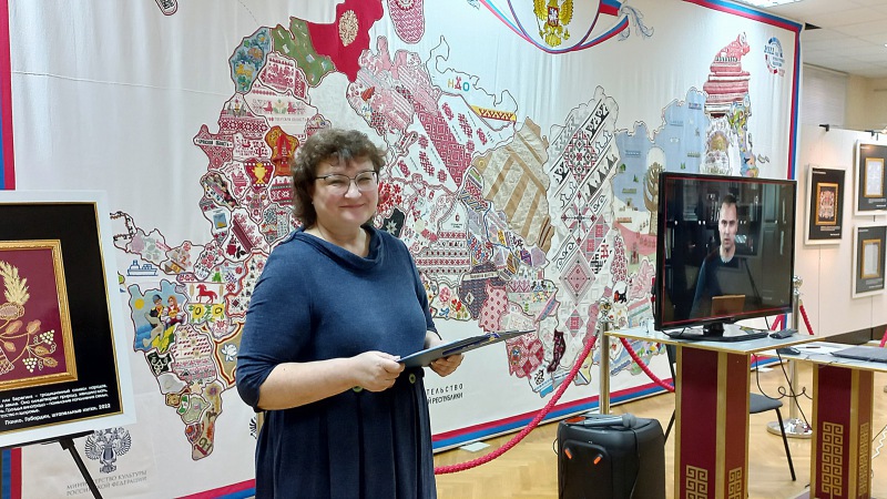 В России Тотальный диктант прошел уже в 20-й раз, но в Национальном музее - впервые. Причиной для выбора музейной площадки стал, конечно же, ее самый известный экспонат - вышитая карта России. Диктант на фоне уникального полотна писали 35 человек.