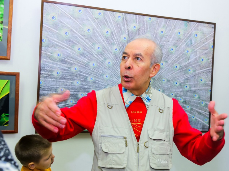 Из первых уст участники вернисажа узнали о сложнейшей работе фотографа-анималиста и о его уникальных инструментах - пленочных фотоаппаратах, один из которых действует с помощью радиоуправления, его аналог был использован при съемках на Луне.