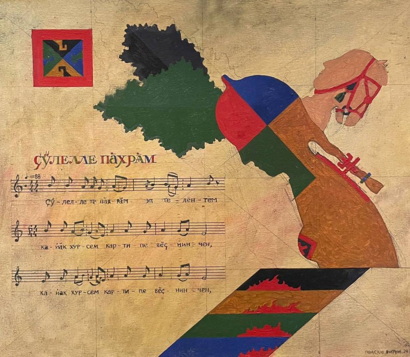 На выставке зрителям представилась уникальная возможность познакомиться с работами Виталия Петровича, созданными за последние несколько лет, которые отражают чувашскую культуру, мифологию и народные традиции. Каждая картина — настоящая история. В ней переплетаются ноты, сюжеты, текст и уникальное видение Праски Витти.