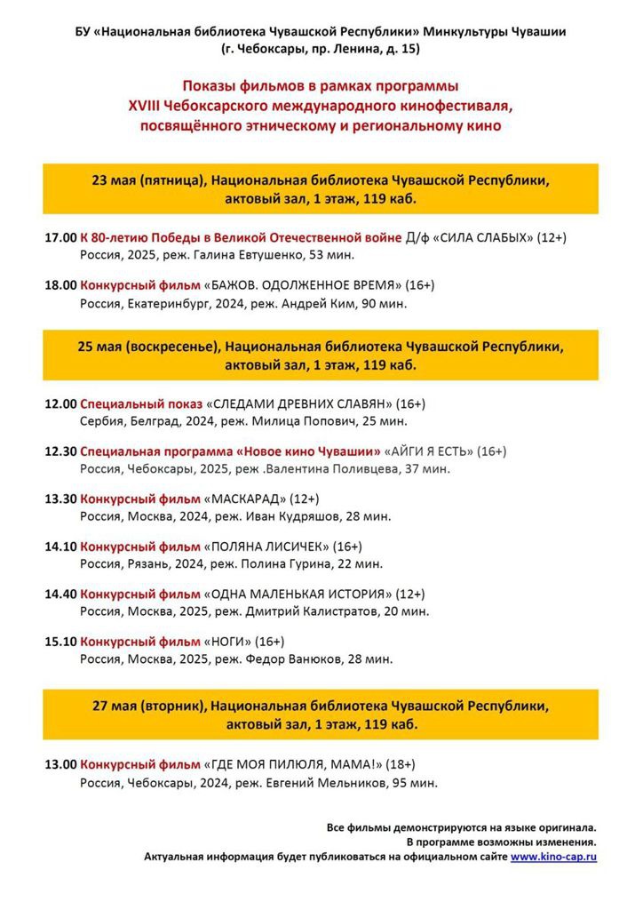 Чебоксарский международный кинофестиваль Национальная библиотека афиша