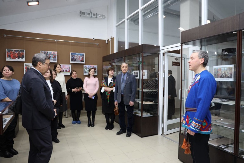 Далее все желающие могли ознакомиться с открывшейся выставкой. Уникальная экспозиция представляет собой масштабный исторический обзор, охватывающий несколько столетий совместного развития народов региона. Она демонстрирует, как на протяжении веков славянские, тюркские и финно-угорские народы региона совместно создавали историю края.
