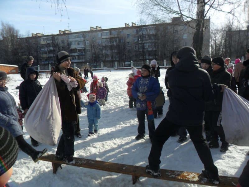 А на многочисленных игровых площадках, дети с огромным удовольствием, поиграли в разнообразные народные игры – «Перетягивание каната», «Бег в мешках», «Петушиный бой», «Вышибалы», «Масленичный веник», «Зимняя рыбалка» и т. д. На протяжении всего праздника звучали масленичные песни в исполнении детского ансамбля народной песни «Потешки».