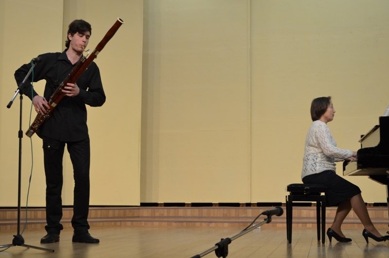 В тот день радостное настроение ощущалось как никогда! Студенты 3 курса оркестрового отделения фаготист Иван Ткаченко и саксофонист Семён Дмитриев исполнили искромётные и игривые произведения. Иван - Юмореску Ю. Самонова, а Семён – вторую часть Концерта для саксофона с оркестром М. Готлиба. Вдохновенно аккомпанировала им обаятельная Татьяна Асламас.