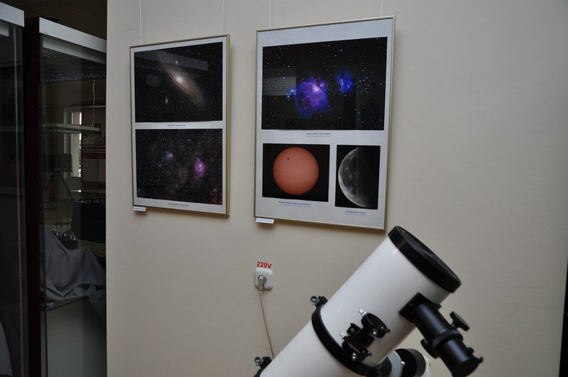 Валентин Николаев познакомил посетителей и с новыми экспонатами на выставке «История фотографии»: появился новый раздел, посвященный астрофотосъемке. Здесь можно увидеть телескоп, предоставленный Мемориальным комплексом летчика-космонавта А.Г. Николаева, и фотоснимки, выполненные профессиональным астрономом Эдуардом Важоровым.