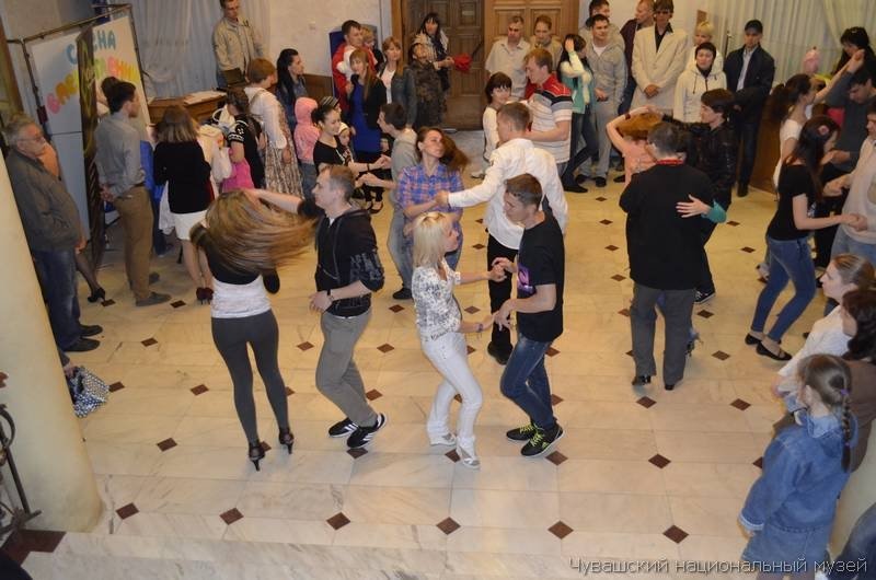 Акция завершилась танцевальной программой от студии «Ритм». Зажигательная сальса, романтичная бачата и жгучий бразильский зук никак не хотели отпускать гостей в эту волшебную музейную ночь. Чувашский национальный музей благодарит своих спонсоров – «Почту России», кондитерскую фирму «Смак», игровое агентство «Clever» и полиграфическую компанию «Futura».