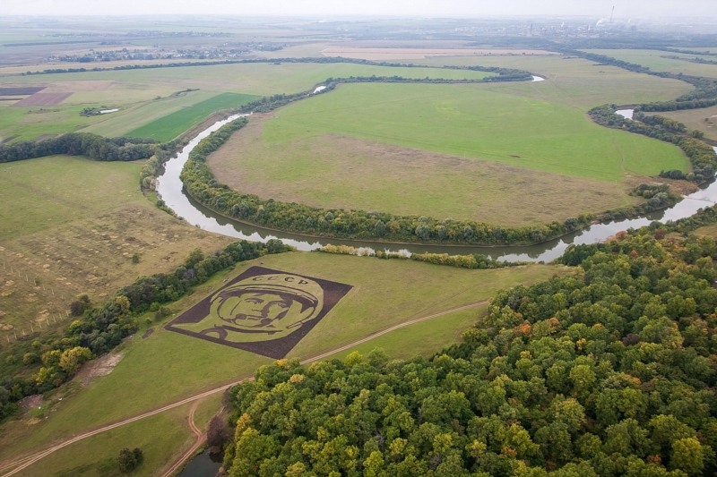Сделаны первые фото агроизображения лика А.Г. Николаева с высоты птичьего полета
