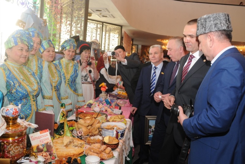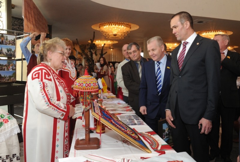 Пред началом мероприятия Михаил Игнатьев ознакомился с выставкой национальных культурных объединений Чувашской Республики, декоративно-прикладного искусства, национального театрального и авторского народного костюма Зинаиды Вороновой, эксклюзивных работ и коллекций костюмов, разработанных студентами Чебоксарского художественного училища, а также фотографий с Всероссийского фестиваля «Родники России».