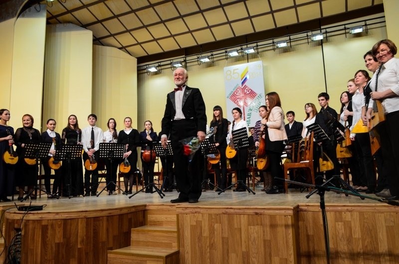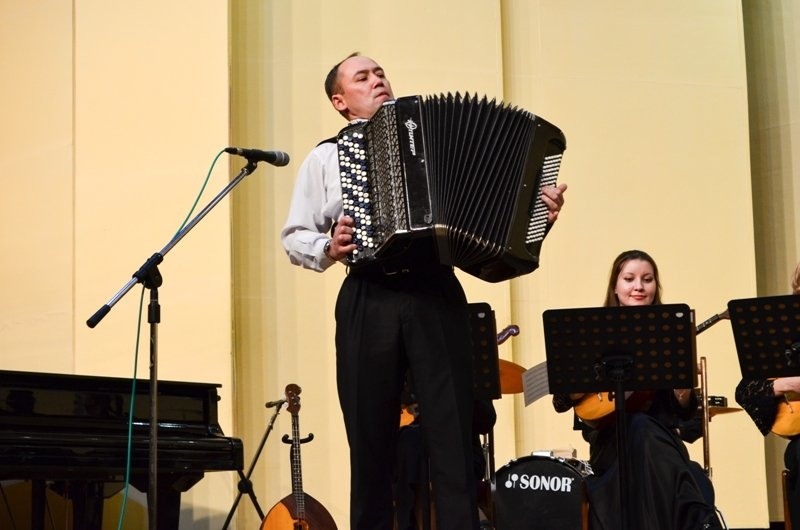 Богат юбилейный концерт был не только талантливыми исполнителями, но и разнонациональной, красочной музыкой. Две пьесы татарского композитора Фарида Яруллина из балета «Шурале» - распевную «Былтыр» и огненную «Пляску Шайтана» отлично сыграла Кристина Козлова. Молодая домристка занимается в классе преподавателя Любови Крупновой, её концертмейстер – заслуженный работник культуры РФ и ЧР Валентина Галян. Бурными аплодисментами слушатели встретили и балалаечницу Яну Меликян.