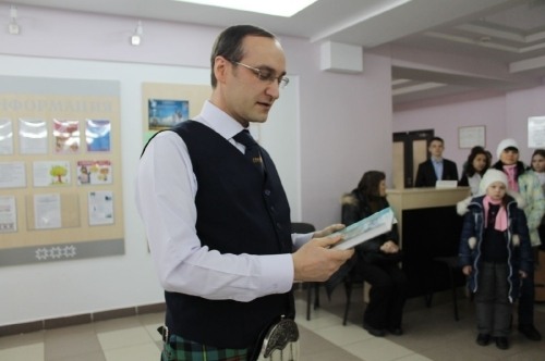 Ведущий мероприятия - организатор Фестиваля - Евгений Салмин пригласил всех на Вечер шотландской поэзии, на котором состоится награждение победителей конкурса.