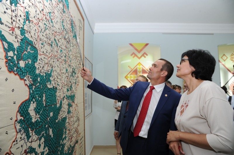 Михаил Игнатьев осмотрел экспонаты музея, среди которых была и современная одежда, выполненная мастерами Альгешевской фабрики «Паха тĕрĕ» в национальном стиле и учитывающая современные модные тенденции. Михаил Игнатьев отметил, что такая стилизация становится все более востребованной, поэтому нужно развивать это направление.