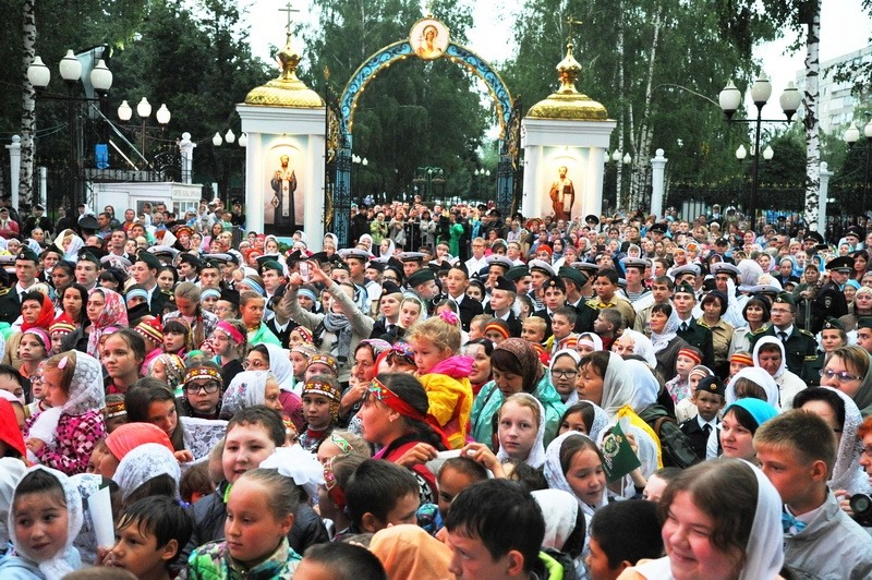 Его Святейшество Патриарх Кирилл обратился к прихожанам, отметив, что рад был ступить на чувашскую землю.