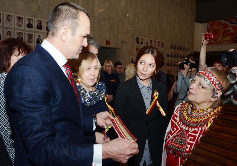 Это одно из крупных мероприятий, проходящих в День народного единства в республике. До начала торжественной части Глава республики Михаил Игнатьев, а также гости праздника ознакомились с выставкой национально-культурных объединений. Здесь были представлены национальные блюда, сувенирная продукция, изделия народных промыслов. Гости могли познакомиться с традициями и обычаями народов, проживающих на территории республики.