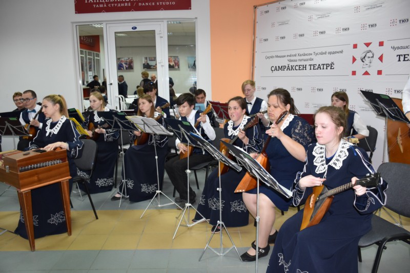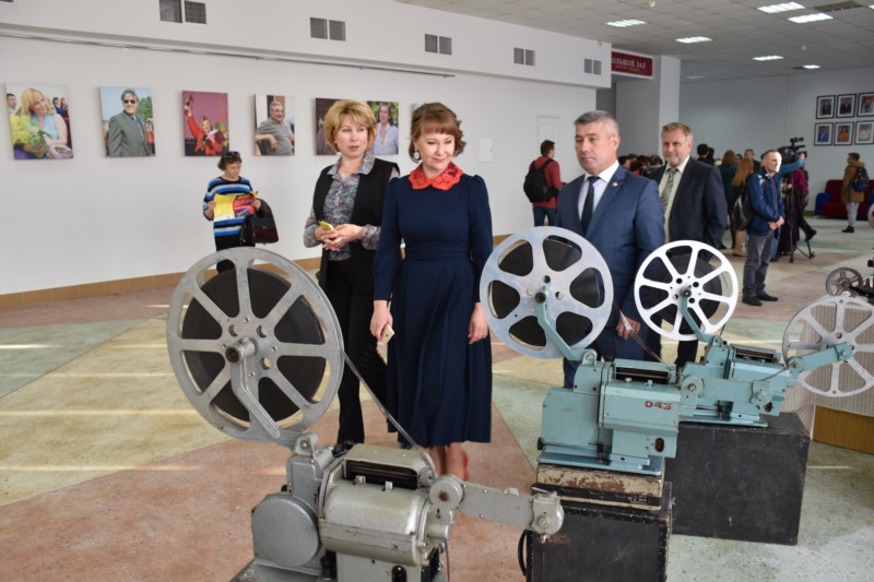 В фойе кинотеатра была развернута передвижная экспозиция Чувашского национального музея "Из истории Чувашкино", которая рассказывает о возникновении и развитии чувашского кино, а также выставка кинотехнологического оборудования Госкиностудии "Чувашкино и архива электронной документации.