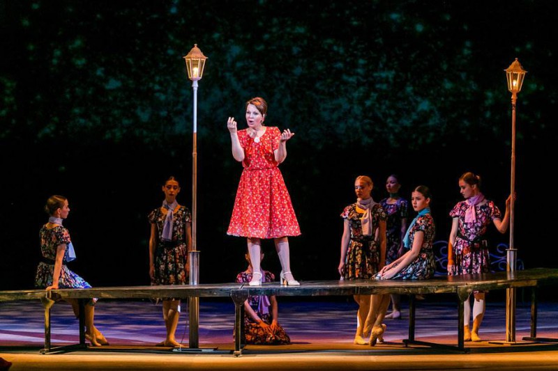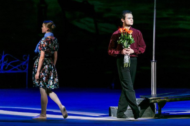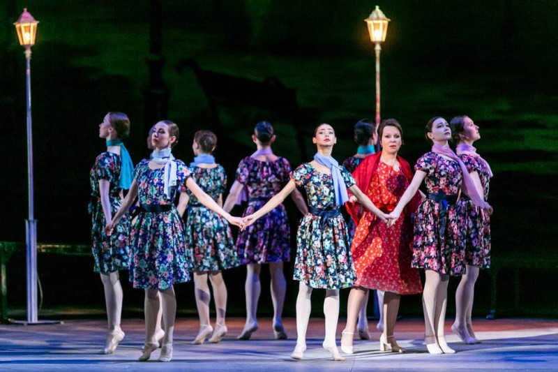 История получилась не столько женской, каковой она прочитывается в строках поэмы Роберта Рождественского, на которые была положена музыка, сколько общечеловеческой. Ожидание "подстерегает" каждого. На крутых жизненных поворотах, на перекрестках судеб и вселенских перепутьях. Ожидание счастья, человека, случая. Ожидание длиною в час, день, год. Это попытался донести до нас художественный руководитель балетной труппы Данил Салимбаев, поставивший спектакль в духе своеобразного эссе, то есть вокально-хореографического сочинения-размышления на заданную тему. Недаром навстречу героине бегут бесчисленные прохожие в исполнении артистов балетной труппы, то сдавливая ее фигурку плотным кольцом, то вовлекая ее в свой хоровод, то "рассыпаясь" по сцене хаотично движущимися частицами, кидая ей в лицо взгляды, эмоции, чувства и пронзая ее стрелами энергетических потоков.