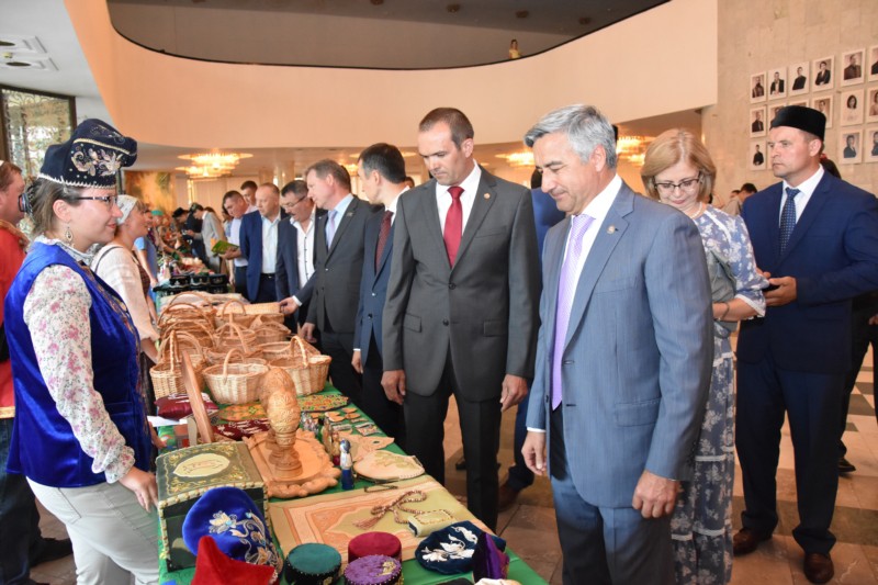 Перед началом представления они ознакомились с выставкой народно-художественных промыслов татарских ремесленников.