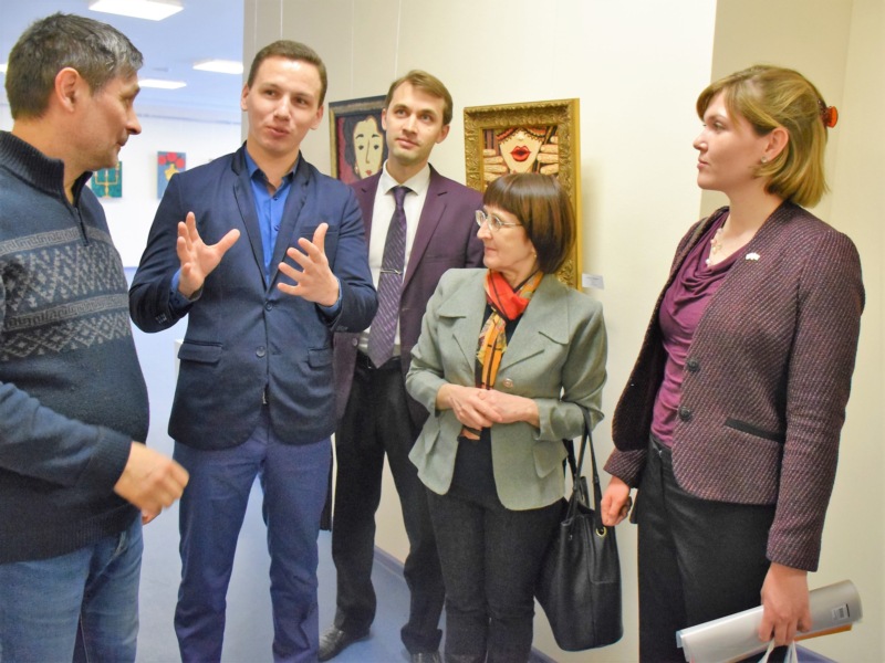 Госпожа Хаберланд-Шульце ознакомилась с выставкой самобытной чувашско-армянской художницы Каллисты Ивановой. Она обратила внимание на яркий творческий почерк скульптурной живописи мастера и с интересом просмотрела работы экспозиции "Другой мир".