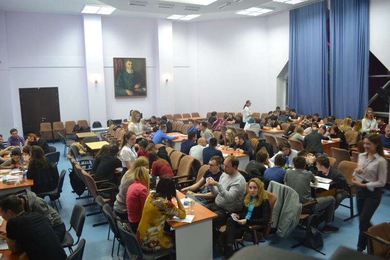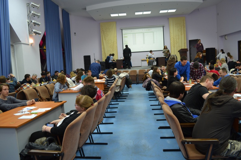 Самой большой интеллектуальной площадкой традиционно стала командная игра по-спортивному "Что? Где? Когда?" - 138 человек - 23 команды - разместились в большом актовом зале библиотеки. Победителем стала команда "Палеография".