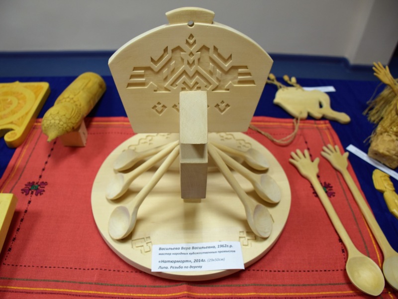 На днях в Доме Дружбы народов Чувашии состоялось открытие пятой персональной выставки единственной в республике женщины - мастера резьбы по дереву Веры Васильевой. Как сказано в пресс-релизе Министерства культуры, по делам национальностей и архивного дела Чувашской Республики, в экспозиции представлены работы из самого благодатного, экологически чистого и удобного материала. Среди порядка ста экспонатов - декоративные элементы интерьера, наличники, статуэтки, настенные панно, домашняя утварь, посуда, разделочные доски, деревянные игрушки, украшения одежды, солонки, тарелки, блюда, чаши, ложки.