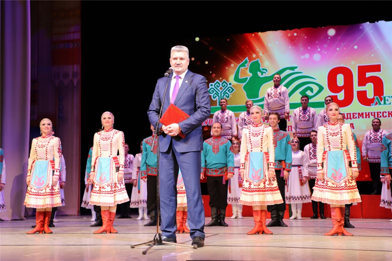 С 95-летием со дня основания Чувашского государственного академического ансамбля песни и танца присутствующих поздравил министр культуры Константин Яковлев. В своем выступлении он высоко оценил деятельность ансамбля, который на протяжении многих лет радует своими выступлениями зрителей не только Чувашской Республики, но и регионов Российской Федерации.